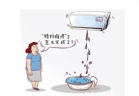冷凝水進(jìn)入集水盤,卻沒有流向室外的通道。慢慢的集水盤里的水滿了,就會往外溢,造成內(nèi)機(jī)滴水。