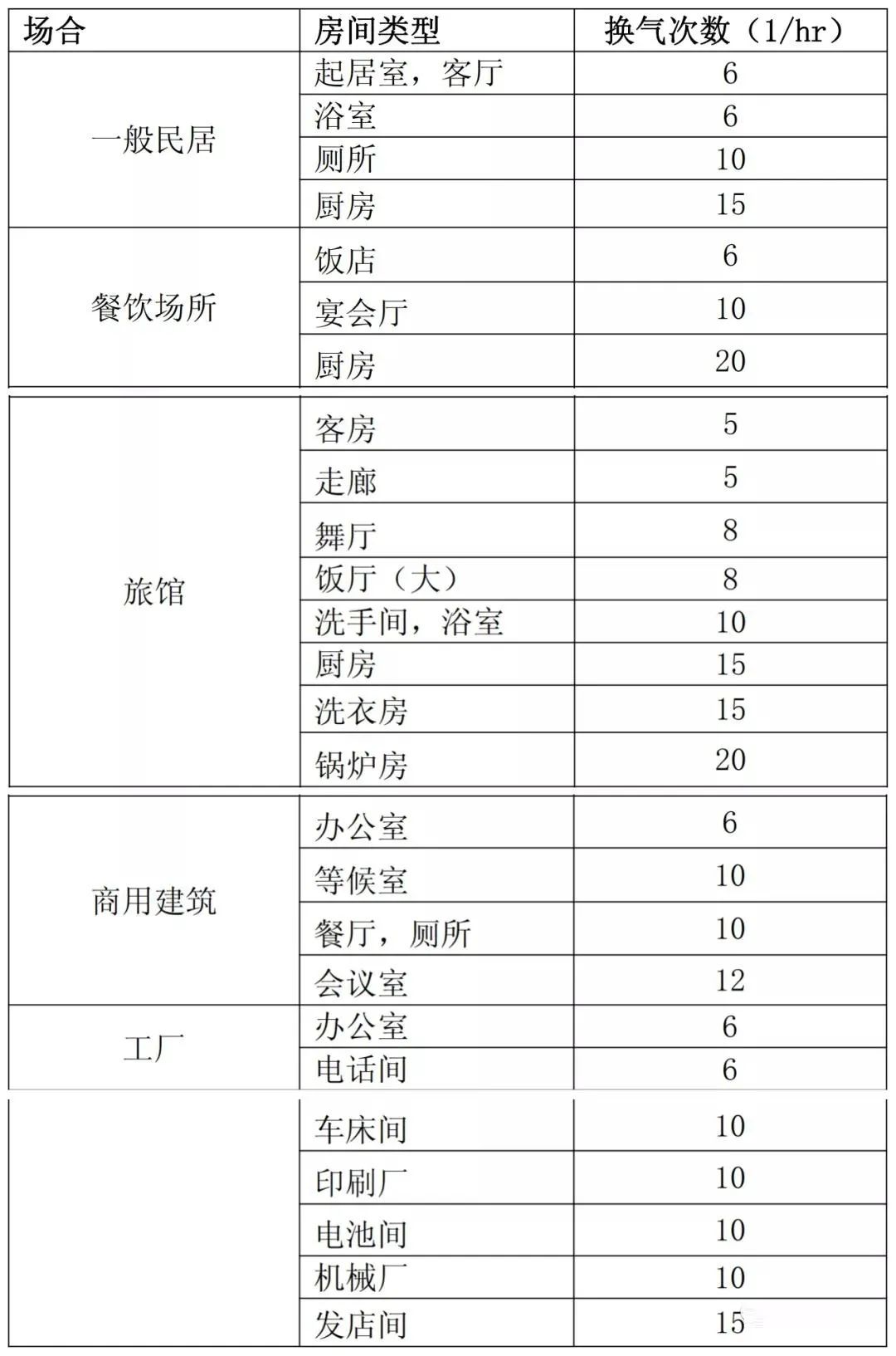 引入新風(fēng)主要是為了改善空調(diào)房間內(nèi)空氣質(zhì)量,降低有害物質(zhì)的含量和濃度, 確保在內(nèi)的人員的舒適度和生理健康, 維持工藝要求。確定需要的新風(fēng)量時,往往按照室內(nèi)廢氣(尤其是 CO2)的產(chǎn)生量以及其他的室內(nèi)條件。一般來說,應(yīng)保證每人每小時 30m2的新風(fēng)量。對于普通場合,可以根據(jù)每人占用面積來計算新風(fēng)量:計算公式:必要風(fēng)量(m3/h)=A*面積/人均占有面積上式中,A 表示人均新風(fēng)量(m3/h)通常進(jìn)行估算時可使用 20m3/h。