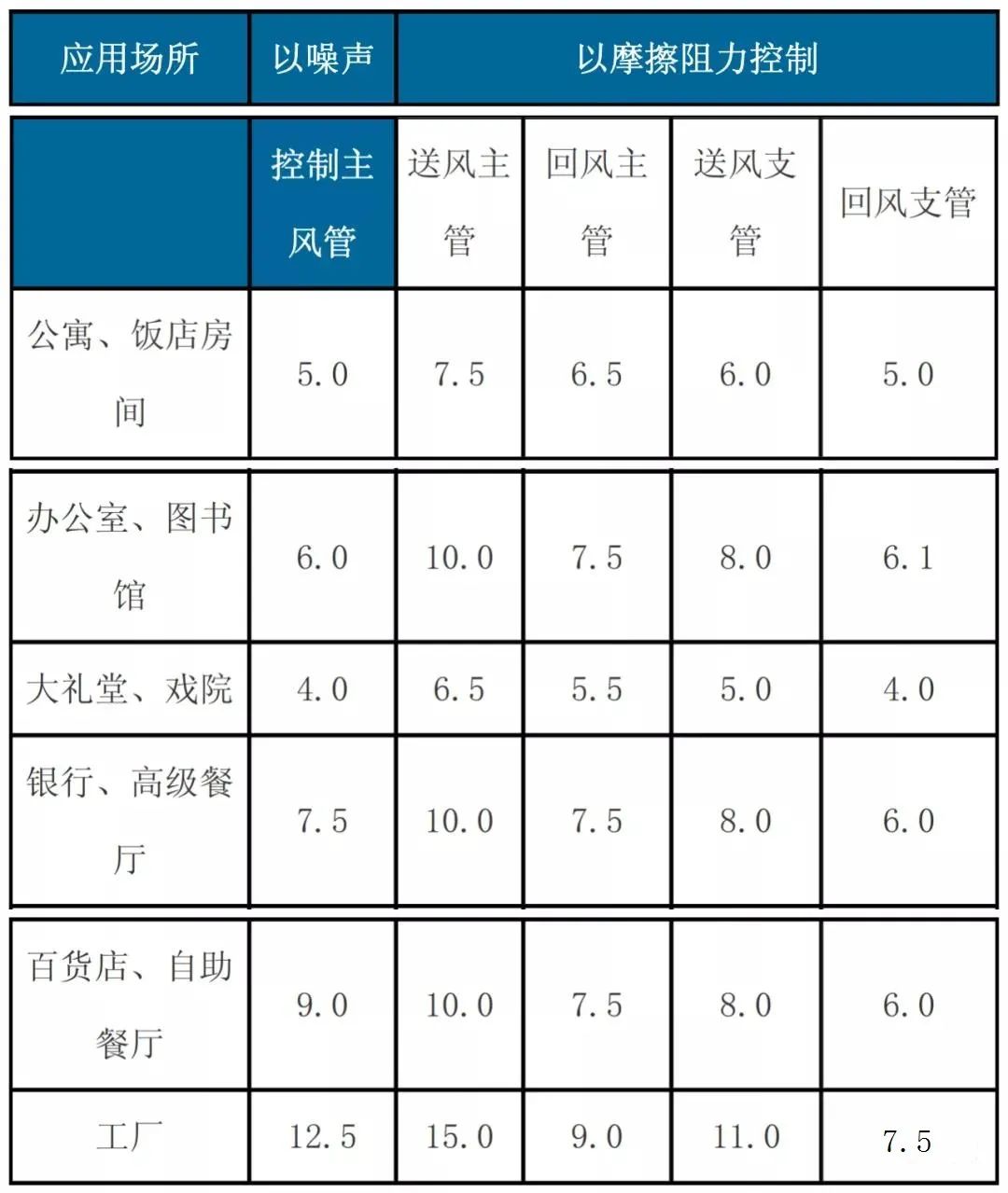 表 3.低速風(fēng)管系統(tǒng)的最大允許流速 (m/s)