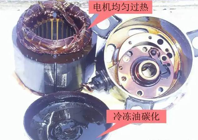 冷凍油主要是起到潤滑和密封的作用,如果系統(tǒng)出現(xiàn)缺油或者是油變質(zhì)將導致壓縮機的磨損或者是高溫,從而造成電機的負載增加或者是卡缸及抱軸等等情況。